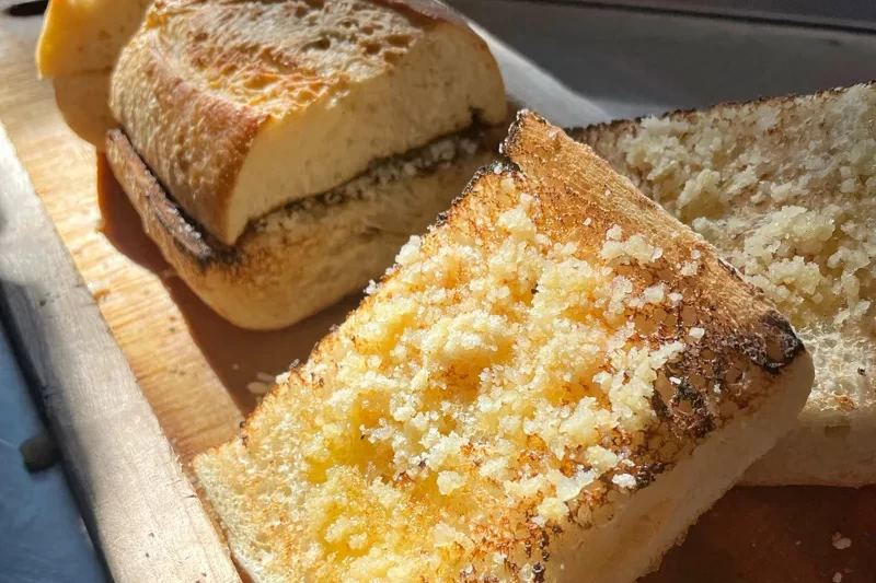 Locally made artisan roll dipped in butter and topped with a Parmesan garlic blend.